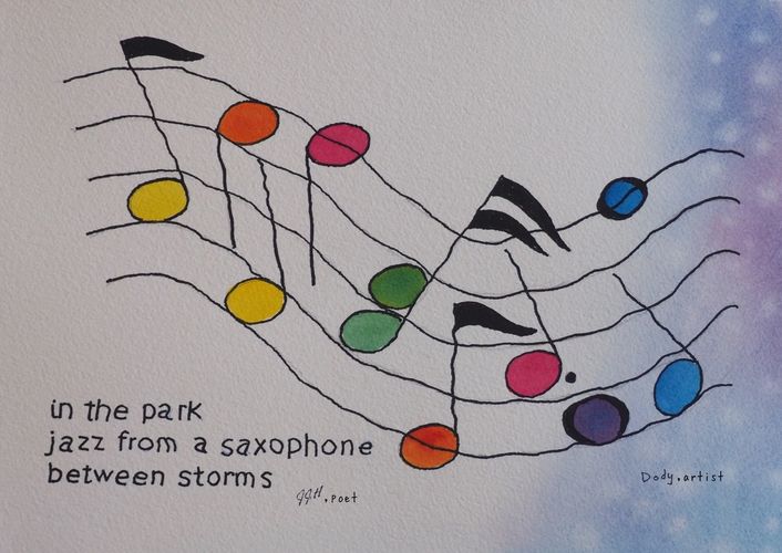 Haiga is a traditional Japanese art form that combines text and image, with each complementing the other. This collection of English-language haiga combines haiku of poet Johnnie Johnson Hafernik and paintings of artist Dorothy M. Messerschmitt (Dody), all of which are watercolor with the exception of one acrylic.